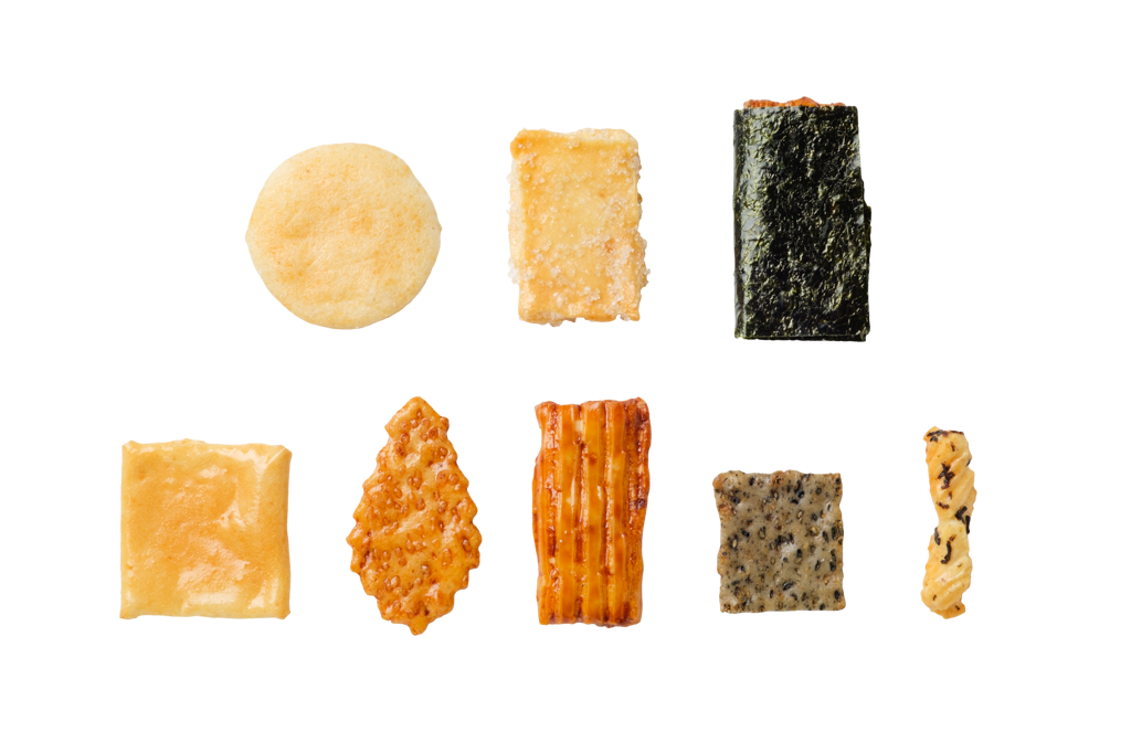 | 原材料名 | もち米(国内産)、うるち米(国内産)、醤油、砂糖、水飴、海苔、黒胡麻、植物油脂、デキストリン、食塩、澱粉、昆布エキス、粉末かつおだし、香辛料/着色料(カラメル)、調味料(アミノ酸等)、(一部に小麦・大豆・ごまを含む) |
