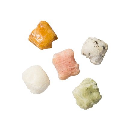 プレーン味、海老味、ゴマ味、青のり味、醤油味の5種類がミックスではいっていて、味付けは素焼味です。